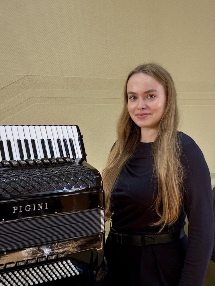 Адукацыя: Беларуская дзяржаўная акадэмія музыкі (2024, клас акардэона Л.В.Скачко); там жа магістратура (2025, пад кіраўніцтвам Л.В.Скачко)