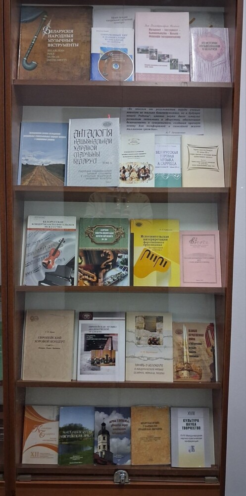 На выставе прадстаўлены навуковыя выданні Беларускай дзяржаўнай акадэміі музыкі, а таксама фундаментальныя выданні асноўных цэнтраў вывучэння музычнай культуры Беларусі, публікацыі вядомых музыказнаўцаў і маладых навукоўцаў, чые навуковыя інтарэсы звязаны з гісторыяй народнай, царкоўнай (духоўнай) і свецкай прафесійнай музыкі, станаўленнем харавых традыцый, выканальніцкім мастацтвам, самабытным фальклорам і ўзаемадзеяннем з агульнаеўрапейскімі музычнымі працэсамі.