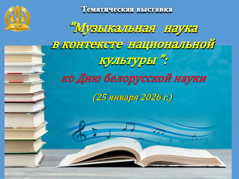 Беларуская дзяржаўная акадэмія музыкі прапануе тэматычную выставу “Музычная навука ў кантэксце нацыянальнай культуры”, падрыхтаваную да Дня беларускай навукі, які ў 2026 годзе адзначаецца 25 студзеня.