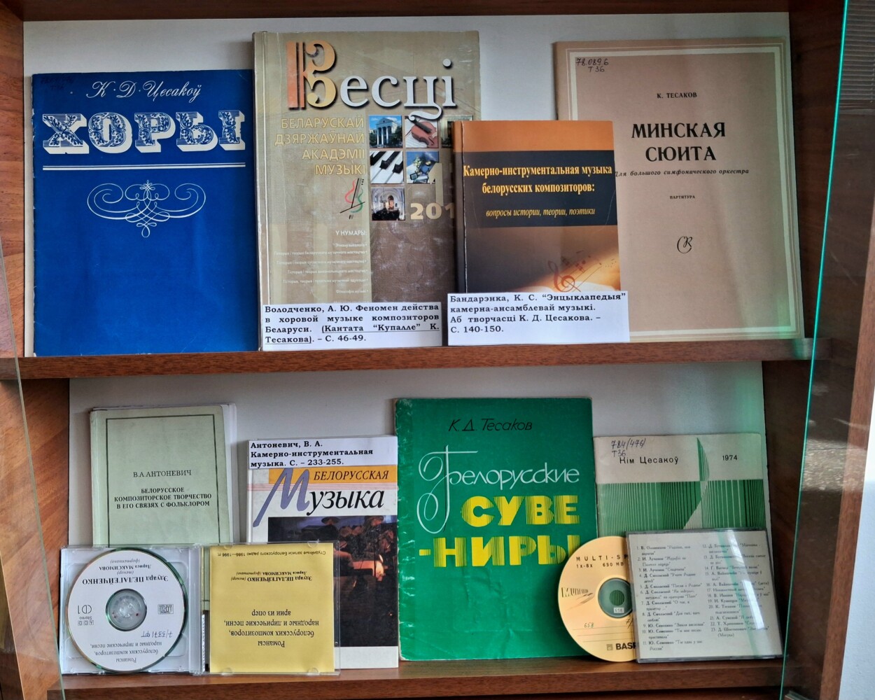 Бібліятэка Беларускай дзяржаўнай акадэміі музыкі прадстаўляе тэматычную выставу “Кім Дзмітрыевіч Цесакоў”: да 90-годдзя з дня нараджэння (1936–2018) беларускага кампазітара, педагога, члена Саюза кампазітараў БССР (1967).