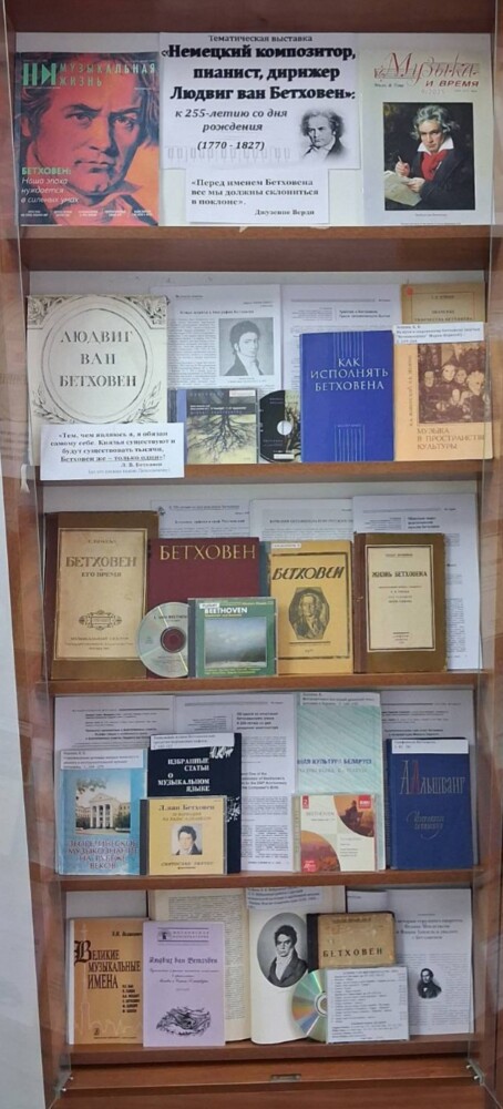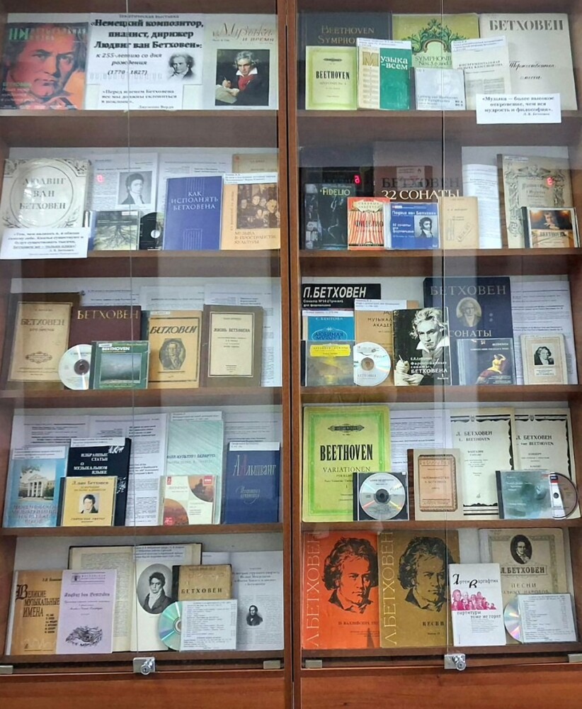 Бібліятэка Беларускай дзяржаўнай акадэміі музыкі прадстаўляе тэматычную выставу «Нямецкі кампазітар, піяніст, дырыжор Людвіг ван Бетховен»: да 255-годдзя з дня нараджэння (1770 – 1827).