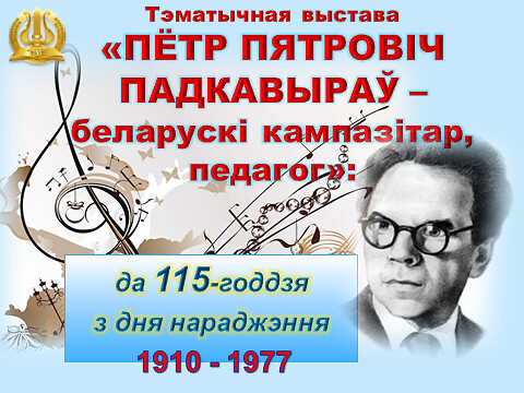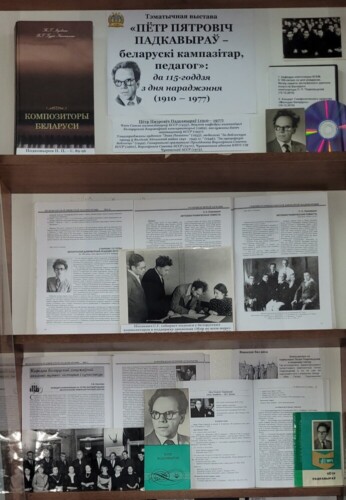 Бібліятэка Беларускай дзяржаўнай акадэміі музыкі прапануе тэматычную выставу «Пётр Пятровіч Падкавыраў – беларускі кампазітар, педагог», прымеркаваную да 115-годдзя з дня нараджэння (1910–1977) класіка беларускай музыкі, члена Саюза кампазітараў БССР, дацэнта кафедры кампазіцыі Беларускай дзяржаўнай кансерваторыі, заслужанага дзеяча мастацтваў БССР П. П. Падкавырава.