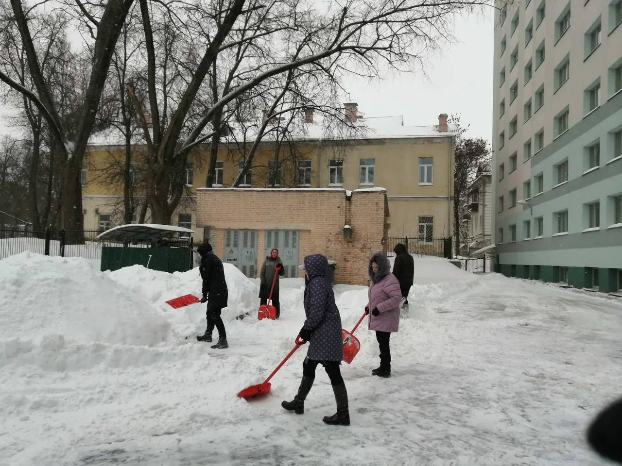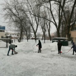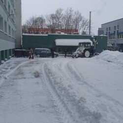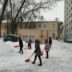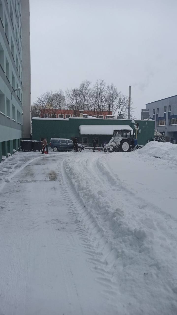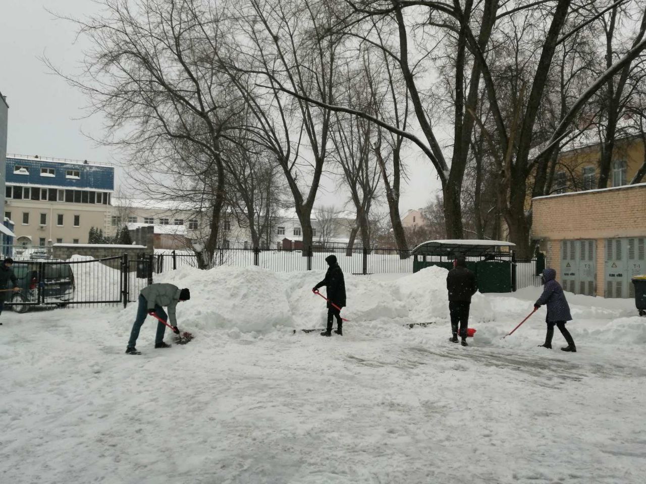 Уборка снега на территории, прилегающей к общежитию академии