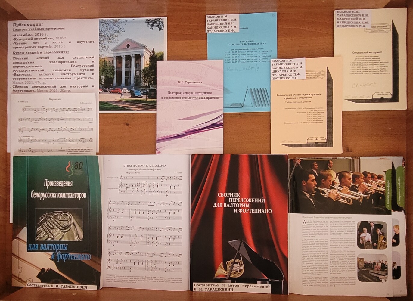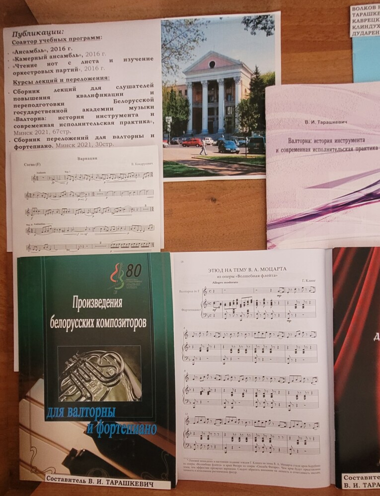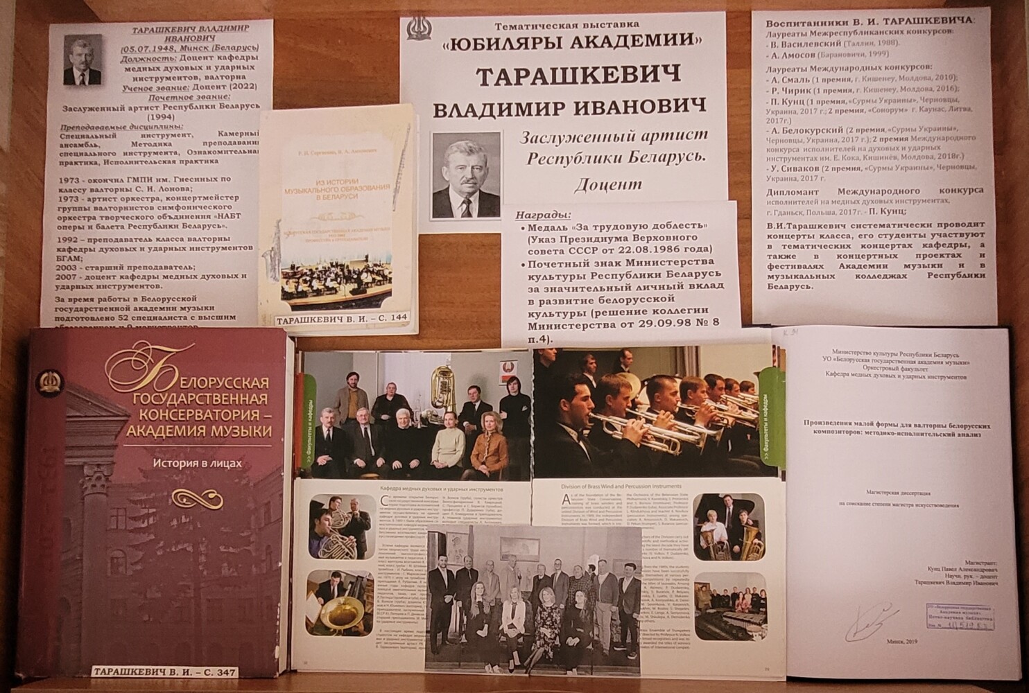 Тарашкевич Владимир Иванович – заслуженный артист Республики Беларусь (1994), доцент кафедры духовых и ударных инструментов (валторна). Имеет учёное звание Доцент (2022).