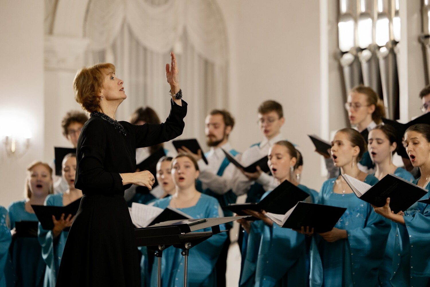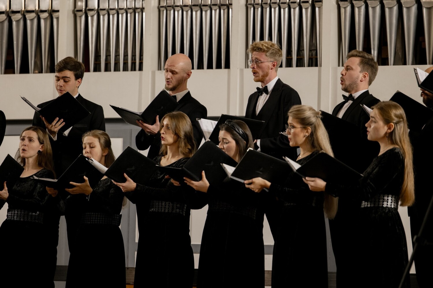 Невероятной красоты свиридовские гармонии в объёмной хоровой фактуре заполнили зал: было исполнено сочинение Георгия Васильевича «Величание Богородицы». Сложная музыка Альфреда Шнитке продолжила программу: прозвучали Два хора из цикла «Стихи покаянные» (№4 «Душе моя», №10 «Придете, христоносеннии людие»). Здесь духовный смысл накладывался на диссонантную вертикаль и острые хроматизмы, исполненные «Altro coro» с ювелирной точностью, что не могло не вызвать в сердцах слушателей восхищение пред гениальностью композитора и возможностями хора.