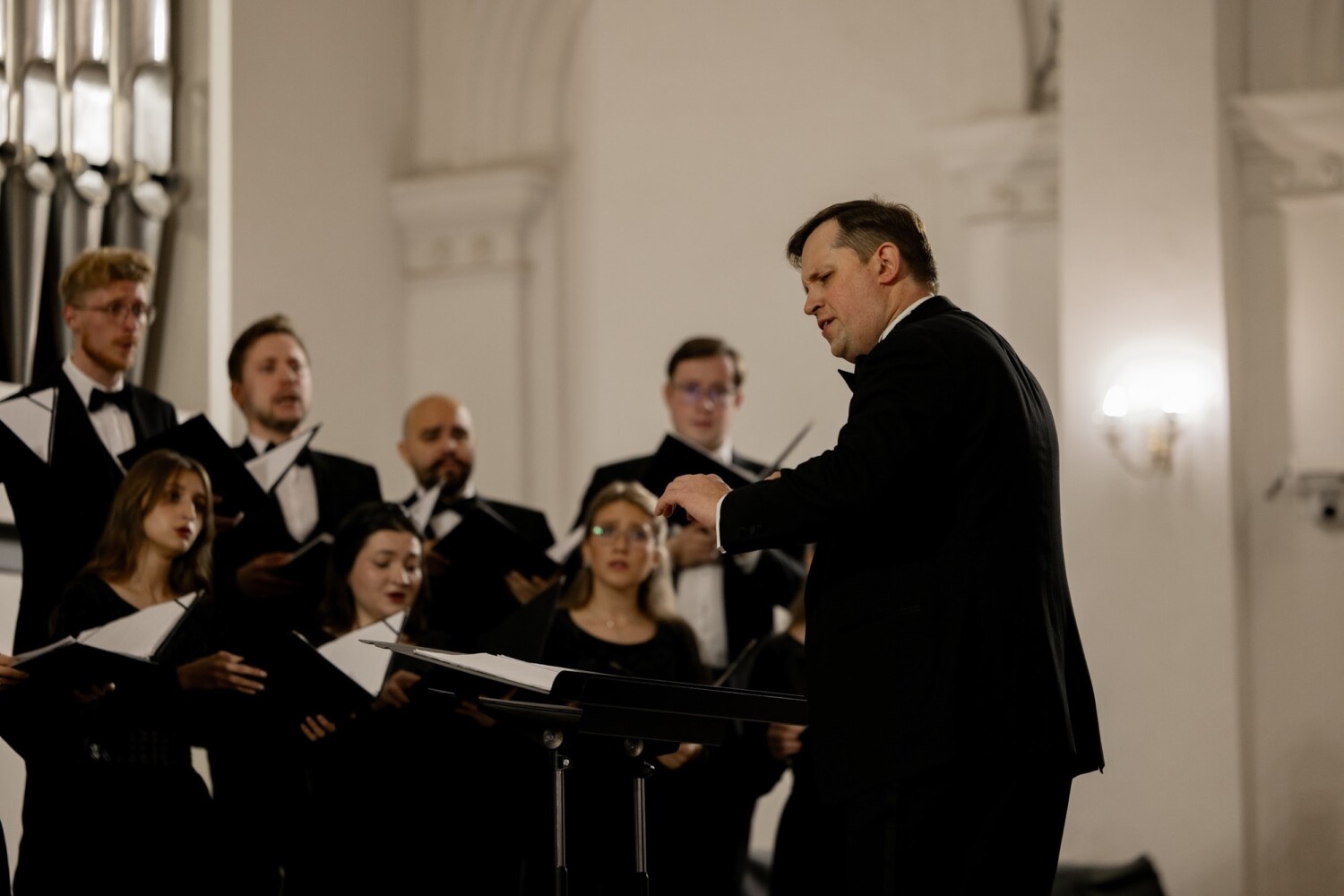 Во втором отделении Ансамбль современной хоровой музыки РАМ имени Гнесиных «Altro coro» под управлением Александра Рыжинского представил разнообразную с точки зрения эпохи программу: от высоких классических образцов русской духовной музыки XIX — начала XX веков до характерных хоровых сочинений современных русских композиторов. Так, вторую часть концерта открыли Два фрагмента из Литургии св. Иоанна Златоуста Петра Ильича Чайковского: «Тебе поем» и «Достойно есть». Чистота, стройность, одухотворённость — такими эпитетами хочется описать исполнение российским хором возвышенной музыки Петра Ильича.